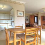 The accommodation comprises a small entrance hall, a substantial sitting & dining room, a fitted kitchen, a conservatory with a door leading out to the rear garden, a main bedroom with fitted wardrobes, a second bedroom or study, and a bathroom with a shower over the bath.