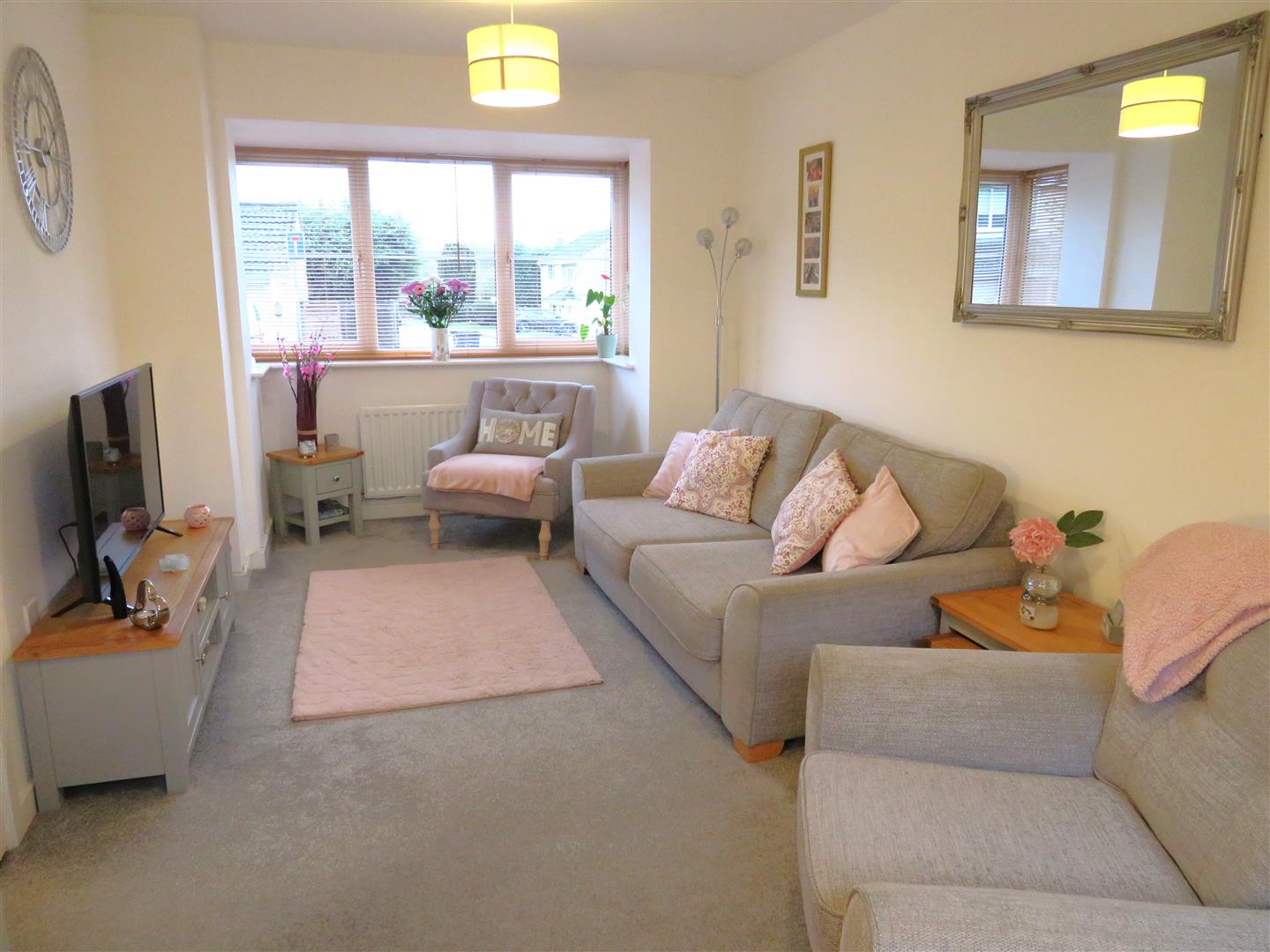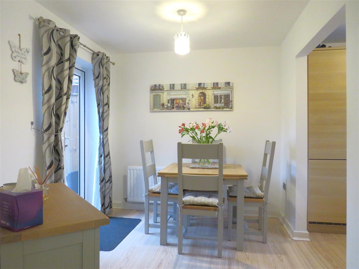 Outside, there is a small front garden enclosed by a neat hedgerow with a central pathway leading to the front door. A tarmac driveway is located directly beside the house, leading to a single garage which also features a door leading out to the rear garden. The garden features a large decked area and a low-maintenance artificial lawn. Internal viewings are by appointment only with Caulfields.